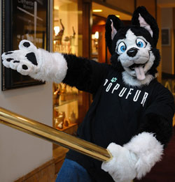 PacerFox has been performing in the fandom for several years. Starting in college at local SciFi cons in the Virginia Beach area, he got his first suit to attend Anthrocon 1999. Since then he has been to several cons and given panels at many on performance and fursuiting in general.