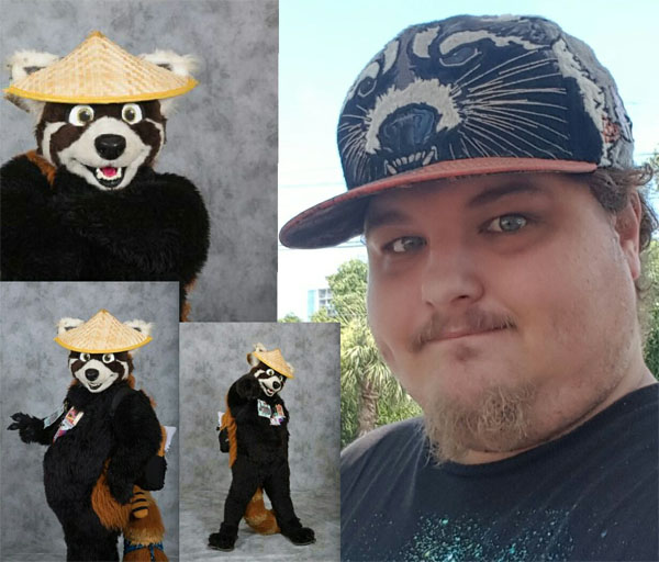 Nash the Red Panda (real name Keary "David" Durst), is a fursuiter and airbrush artist based out of Myrtle Beach, South Carolina. Born in 1983 to a military family and growing up through an era of video game console wars and the birth of the internet, he last recalls becoming a furry at the age of 15 after being introduced to the Roleplaying community of Furcadia. Nash was always an artist and doodled drawings throughout college while pursuing work in the Aviation Industry. Unfortunately a worldly circumstance made it hard to find work and that's when he took residence in South Carolina to airbrush. Eventually Nash moved on to other companies. Now he makes his living doing custom artwork for furries and non-furries alike. He travels the contiguous 48 states, mostly along the east coast, for his career. As a professional artist, his work is featured at fairs and events around the country. More recently, he has become a unique addition to the convention dealer's space, hocking his trade as an airbrush artist for furry fans and characters!